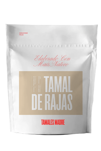 Cuatro tamales de Rajas y Queso Alpino, envueltos en hoja de totomoxtle y elaborados con Maiz Chalqueño Blanco, EDOMEX. (veg)