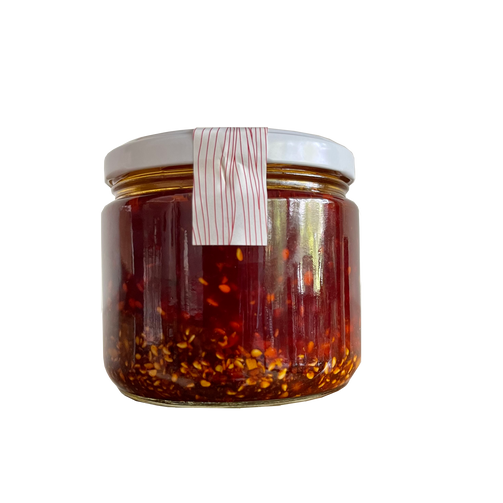 Elaborada con una base de aceite de oliva, nuestra Salsa Macha es un infusión de chile de árbol y chile guajillo a la que le agregamos una mezcla de semillas y ajonjolí.